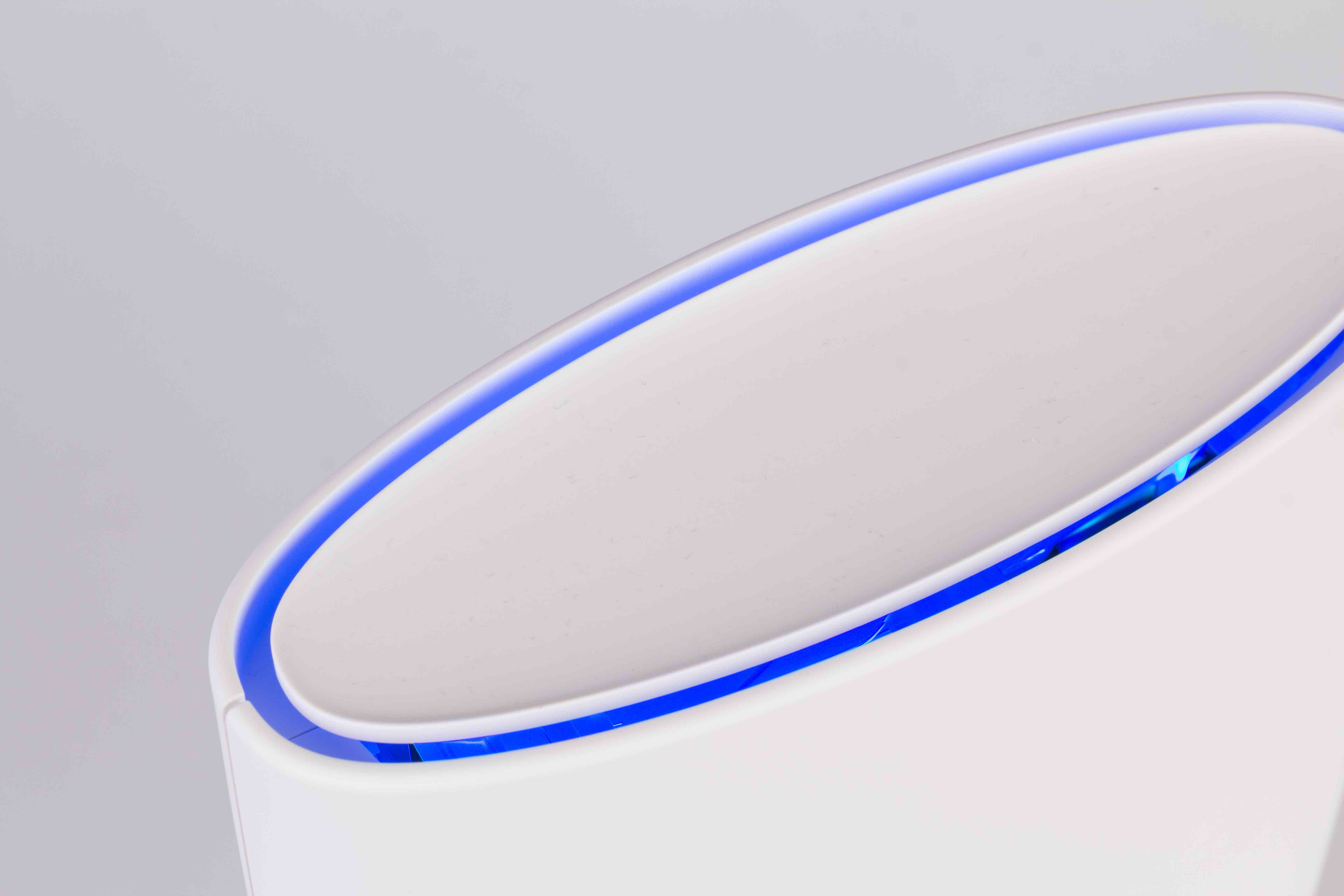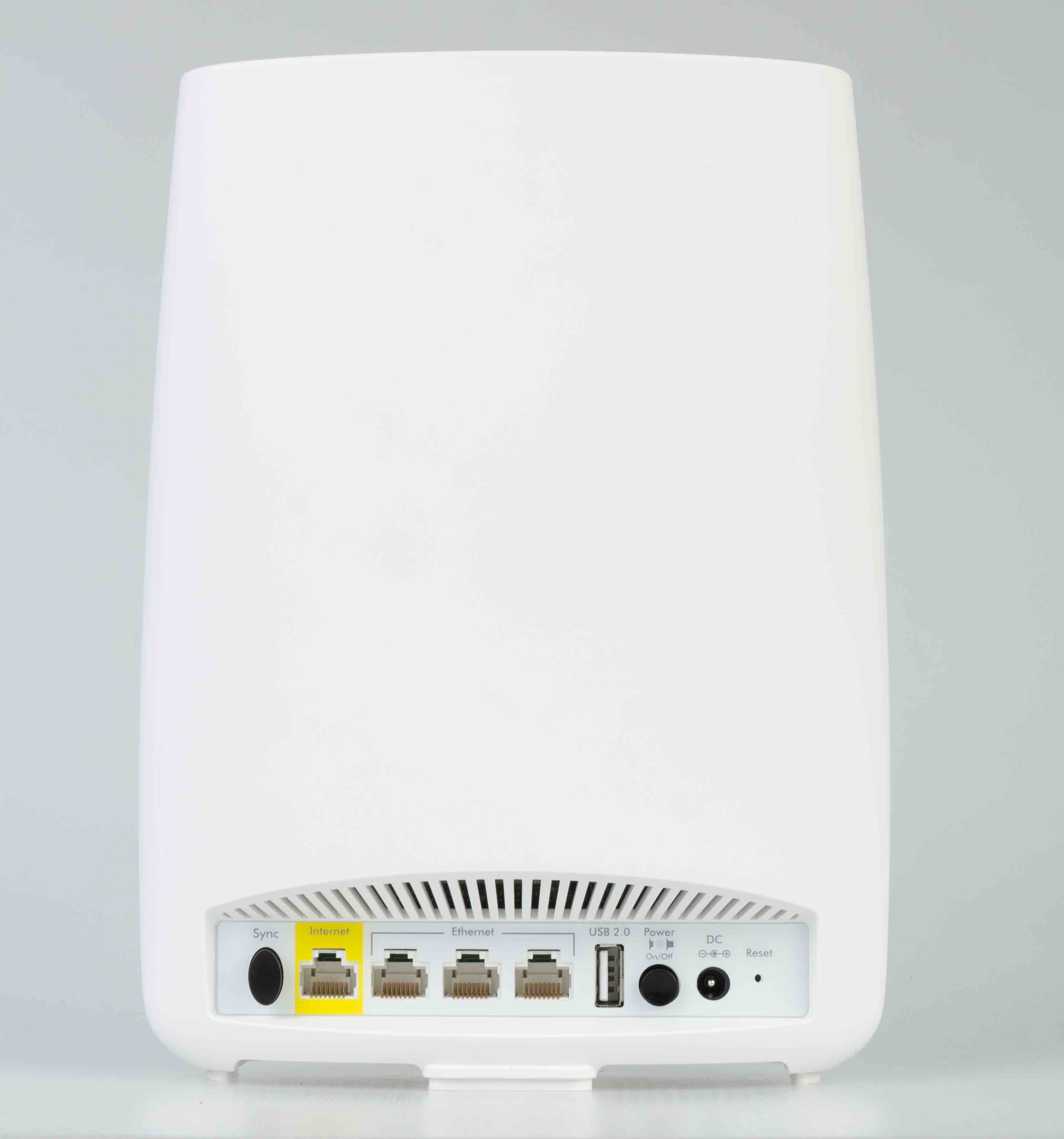 Mit dem Orbi Set will der Netzwerkspezialist Netgear kabellos Internet in alle Räume des Hauses befördern und das in schneller Geschwindigkeit, ohne nennenswerte Einschränkungen gegenüber einem kabelgebunden Netzwerk. Zu diesem Zweck hat der Hersteller das Orbi Kit of Two RBK50 auf den Markt gebracht. Das rund 410 Euro teure System besteht aus zwei Komponenten, die eher einer stylishen Tischlampe oder einem modernen Lautsprecher ähneln. Die in weiß gehaltenen Systembausteine – Router und Satellit müssen keinesfalls versteckt werden. Der Router ist mit einem mit Internet gekennzeichneten Anschluss, sowie drei weiteren Gigabit Lan-Anschlüssen ausgestattet. Eine USB-Schnittstelle, sowie der Anschluss für das externe Netzteil und ein mechanischer Ein-Ausschalter ergänzen die Ausstattung.